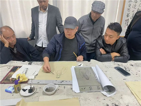 在技法解析与示范环节,王主席不仅细致讲解了线描、渲染、设色等核心技法,更现场铺纸研磨,亲自执笔创作。整个过程从容细腻,将“匠心”在方寸画纸间的凝聚过程展现得淋漓尽致,引得在场学员或屏息凝神,或纷纷举起手机记录下这珍贵的瞬间。现场交流气氛热烈,学员们争相提问,王主席均予以耐心细致的解答。
