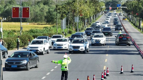 假日期间,记者来到景区看到,各条道路都设置了临时标牌,车流之中,交警们坚守一线执勤值守,指挥车辆有序通行。走进九华山公安局交通指挥中心,大屏上实时显示景区各重点点位交通运行情况。针对假期出现的车流人流猛增现象,九华山公安局于9月30日17时至10月7日17时,实行持续交通管控,并采取大循环和“潮汐”交通模式,特别是车流高峰期,通过渠化调整进出车道,确保景区道路交通安全、有序。