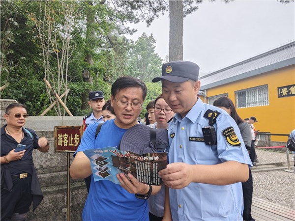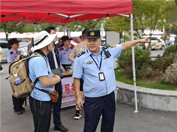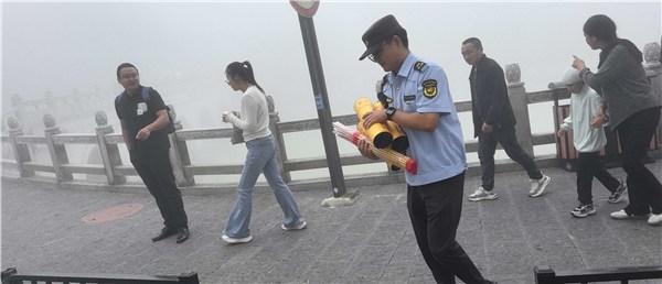 一是旅游市场维护到位。对景区重点旅游线路和人员集中区域定人定岗进行严格蹲守,机动巡逻组加密巡查频次,点、面结合形成秩序管控网,严厉打击各类扰乱旅游市场秩序行为。加强夜间巡查,及时规范夜间出店经营,检查辖区烧烤经营户油烟净化设备使用情况,确保设备运行正常。同时,联合公安等部门维护秩序,引导游客有序排队、错峰游览,规避拥堵风险,确保景区运营平稳。错时开展门票稽查,查补门票11张,金额1760元;查验导游、讲解员90余人次;清理闲散人员100余人次;在游客服务中心出入口查验车辆60余台次;劝离乞讨7人次;管控挑夫6人次;规范出店经营47余处;驱离摆摊设点人员6人次;清理提篮叫卖19余人次。导服中心派遣讲解员302人次。规范讲解员排班秩序60余人次,警告4人次;规范灵山旅行社导游排班秩序5人次。