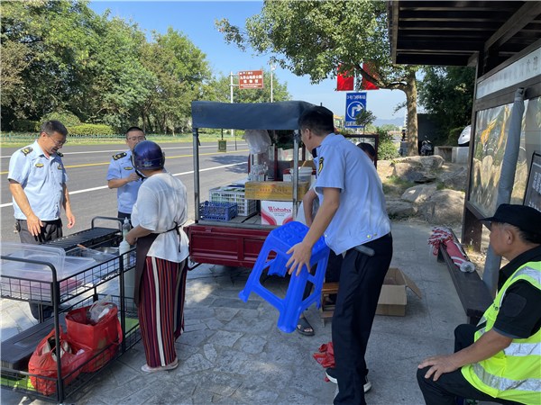 三是全情投入做好旅游服务。坚持违建督查工作不脱节,持续加大节日期间重点违建高发区域的督查、巡查,秉持“不放过一处隐患、不遗漏一个细节”的原则,对区域内建筑物、施工场地等关键点位进行细致核查。依托“党员带头+志愿补位”服务机制,在核心景区重点路口开展便民服务。劝导游客文明燃香120余次,收缴超标准佛香37筒;劝阻游客流动吸烟50余次;劝离天台青龙背逗留游客30余人次;接受游客咨询800余人次;免费发放矿泉水580余瓶;引导游客停放车辆400余车次;协助游客网络购票和乘车70余次;提供应急药品服务5人次。