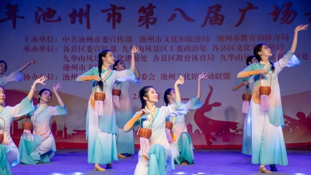 9月27日晚,九华山风景区选送的作品《风吹山歌闵茶香》凭借鲜明的地域特色与精湛的艺术表现力,在池州市“奋进新征程 建功新时代”第八届广场舞大赛中夺得一等奖。