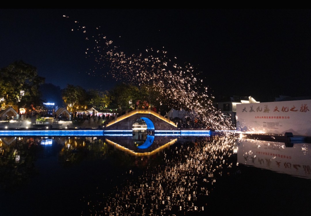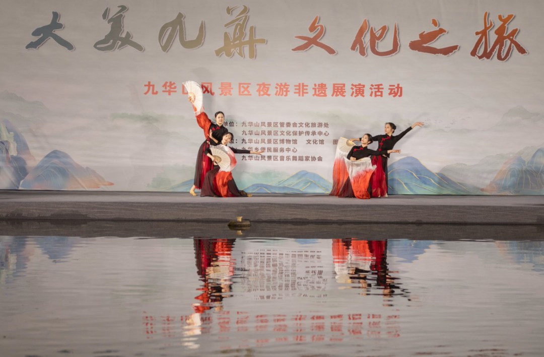 11月20日晚上,九华山风景区文化旅游处在九华乡老田宗祠广场组织举办九华山风景区夜游非遗展演(第九场)燃动初冬。
