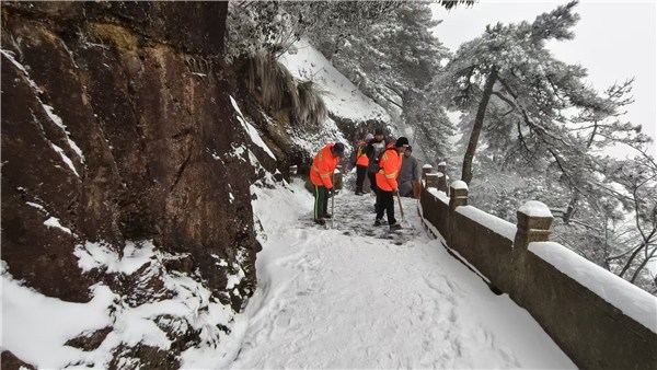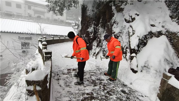 二是全面优化景区环境。加大巡查督查力度,积极协调九安建投公司,在31日晚安排专人清理北大门广场香烛,并于1月1日组织50余人对6条责任区内的游步道线路开展清雪作业。累计清理卫生死角10余处、河道沟渠5处;清理香烛2袋;完成垃圾清运22车次;免费开放旅游公厕29座。