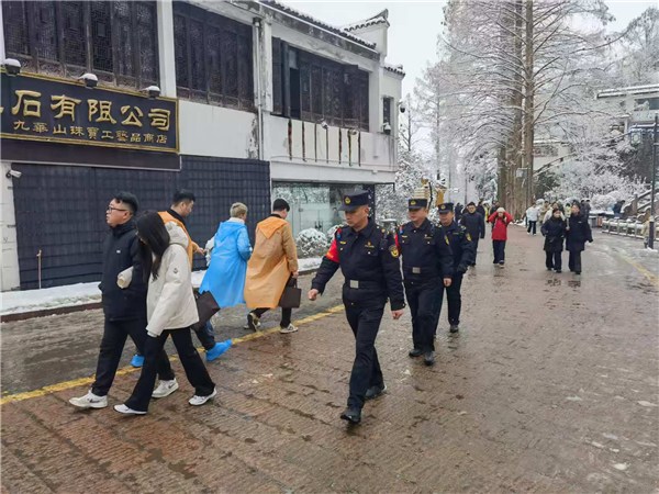 一是全力保障市场秩序。采取片区管理、错时执法等方式,对野导黑导、追客缠客、恶意乞讨、提篮叫卖等违法违规行为进行专项整治。12月31日晚,在核心景区组建加强班值守至凌晨,重点巡查肉身殿北大门、化城寺广场、闵公殿等区域,及时劝导游客燃香点灯行为。共查验导游、讲解员59人次;规范导游讲解员排班17次;清理闲散人员43人次;查验车辆50余台次;规范出店经营21处;清理提篮叫卖15人次;劝离摆摊、航拍、乞讨等行为多起。