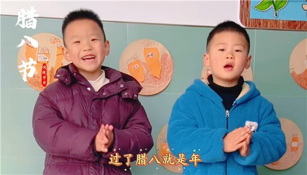 “小孩小孩你别馋,过了腊八就是年……”清澈的童声随着节奏响起,孩子们在老师的带领下,用稚嫩却认真的手势舞演绎起古老的腊八民谣。手随律动,声伴节拍,传统童谣与现代肢体表达巧妙结合,让文化的传承在歌声与舞动中变得自然而充满乐趣。