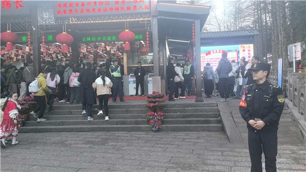 三是景区旅游服务保障到位。在景区重点路口,设立志愿者服务台,热情服务来山游客。劝导游客文明燃香310余次,收缴佛香77筒;劝阻游客流动吸烟40余次;接受游客咨询3180余人次;免费发放矿泉水200余瓶,为游客提供紧急药品3人次,利用监控、电瓶车为游客寻找车辆19人次,好人好事1件。