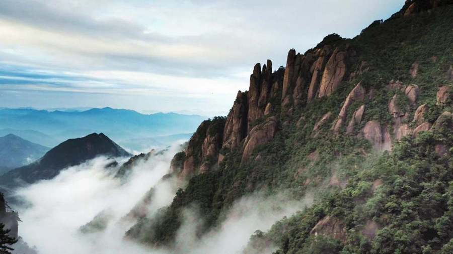 庐山,以典型的中国大陆东部山地第四纪冰川遗迹、地垒式断块山构造和变质核杂岩构造遗迹所构成的多成因复合地貌景观著称。其地貌与植物、文化、历史紧密相连。这里,风景秀丽,森林茂密,飞流、峡谷、山峰、瀑泉齐备;风格迥异的异国别墅比比皆是;不同宗教和睦共处。从未间断的历史承载和丰厚的中西文化底蕴使它被誉为“人文圣山”。