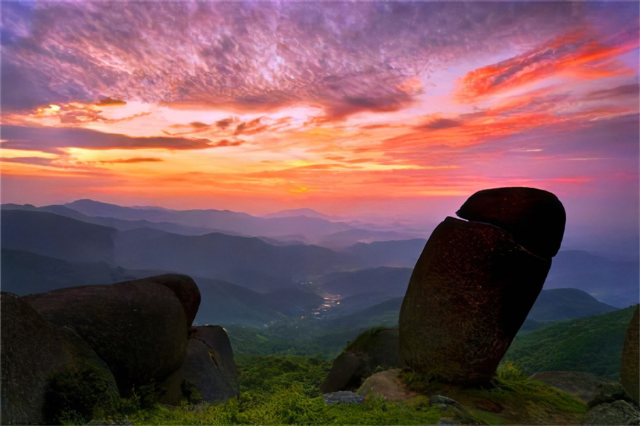 广西浦北五皇山国家地质公园位于浦北县境内,属国家4A级景区,地理位置为东经109°19′17″-109°24′45″,北纬22°07′30″-22°12′10″,海拔200-700米,面积32平方千米,包括一个园区,人头岭、金童溪、玉女溪、妹追寨、石柱岭五个景区。