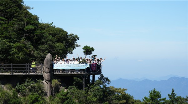 开营当天,章寅虎老师以《走进九华山》为主题,从世界地质公园的申报历程切入,讲解九华山的发展之路;吴维平教授从矿物学与岩石化学切入,讲解九华山花岗岩的形成奥秘,让志愿者们感受地质背后的科学魅力。随后,志愿者们走访柯乔门坊,了解明代抗倭名将、王阳明门生柯乔的历史事迹;傍晚又来到老田村,聆听千年古村保护故事与文人诗意,在自然与人文交织中,初步认识九华山的立体价值。训练营期间,志愿者们走进花台、天台与凤凰松景区,开启沉浸式地质与生态探索。沿花台景观栈道步行至天台,云海翻涌、奇石林立,“峰—丘—盆”地貌清晰呈现。吴维平教授带领营员观察晶洞花岗岩,讲解地貌形成过程;生态组志愿者们辨识林木、聆听虫鸣、观察记录动植物,行程生动活跃。午后,志愿者们探访凤凰松,领略千年古松的姿态与自然精神象征。志愿者们在费业朝老师引领下,考察化城寺、百岁宫、东崖禅寺等古建筑群,循着金乔觉、王阳明与李白的足迹,探寻自然与人文交织的深厚底蕴。青石台阶、古建筑雕饰及历史典籍,共同呈现出九华山的文化厚度和地质之美。志愿者们既是学习者,也是传播者。他们通过拍摄视频、撰写科普文章、开展实地记录,将九华山的地质与文化故事转化为公众易于理解的科普表达。训练营结营仪式上,志愿者们表示,将继续以青年视角为九华山代言,把“地质+文化”的综合价值传播得更远。九华山世界地质公园相关负责人表示,训练营不仅是一次知识与实践的结合,更是一次公众科普与青年成长的双向奔赴。未来,公园将继续构建常态化志愿者培养机制,推动科普教育与自然保护的协同发展,并通过志愿者力量让更多公众理解人与自然和谐共生的重要性,持续探索地质与文化融合发展新路径,为九华山世界地质公园可持续发展注入青春力量。