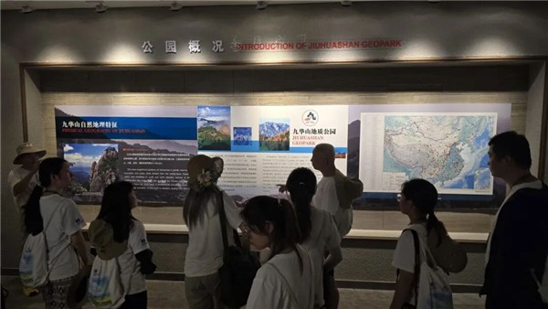 讲座结束后,志愿者们前往九华山地质博物馆。展厅内,志愿者们通过互动展项与图文资料,系统梳理九华山从地壳运动到花岗岩峰林雕琢的地质脉络,再到文化与自然景观的千年交融。当看到"江南第一山"地质模型时,感叹"原来山体的褶皱里,藏着地球写给人类的情书。