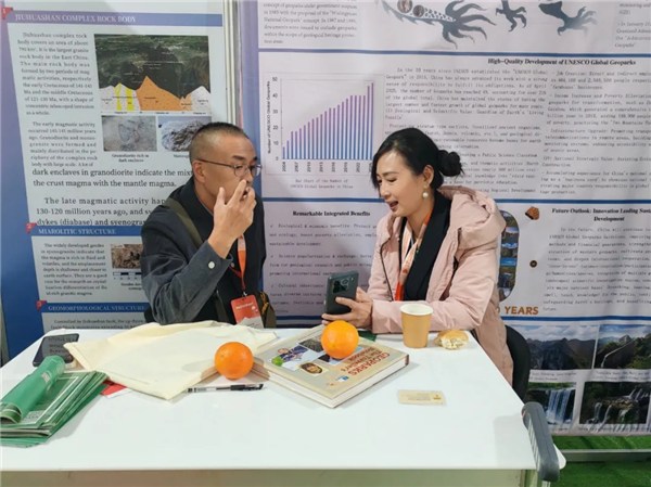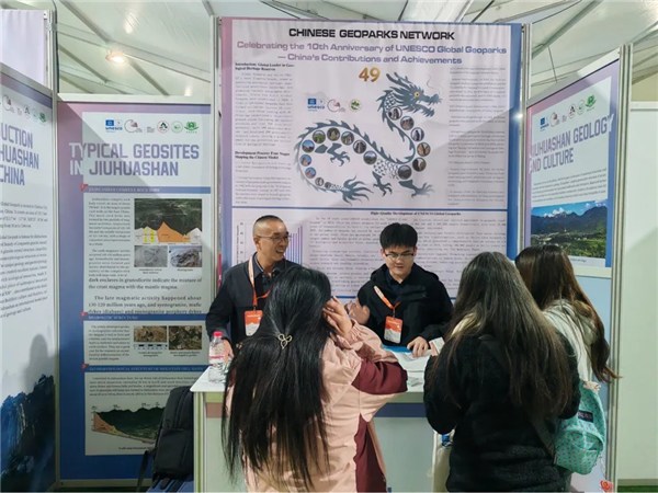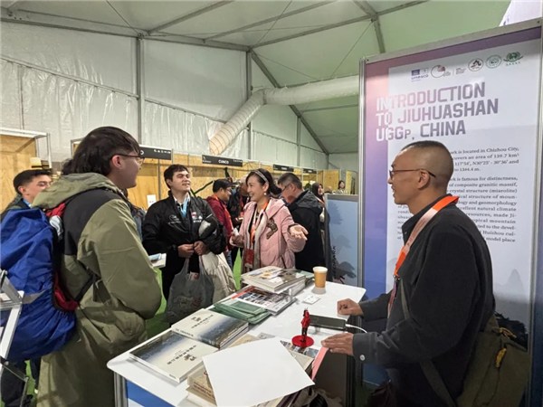 大会期间,代表团积极参与各项主题研讨会活动,通过布置专题展位、发放宣传物料、现场推介答疑等方式,向全球参会代表直观呈现九华山的地质价值与发展魅力。同时,代表团成员依托九华山主题报告,系统展现了公园在地质遗迹保护、科普宣教活动开展及带动周边经济可持续发展等方面的实践经验与创新成果。