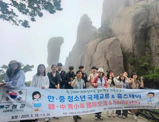 (图为韩国求礼郡青少年交流团参观花台景区)