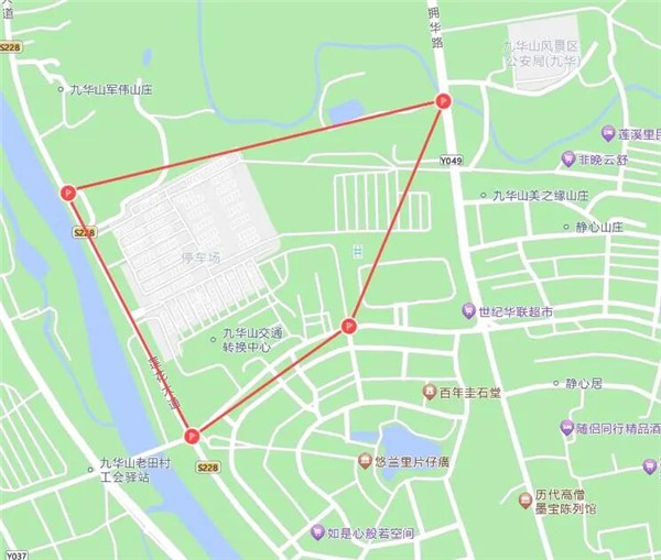 (一)游客服务中心区域:皖源客栈西侧15米、莲花大道与柯村北路交叉口东北侧、漫漫民宿(九华山游客服务中心店)东侧15米、中国工商银行(池州九华山支行)南侧20米四点范围内。坐标点(国家测量局02号标准,下同):