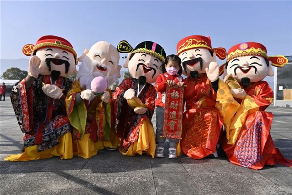 “福、禄、寿、喜、财” 化作鲜活的人物,走入古村街巷。与他们相遇、互动,把对新年的美好期盼化作触手可及的祝福,把吉祥如意带回家。
