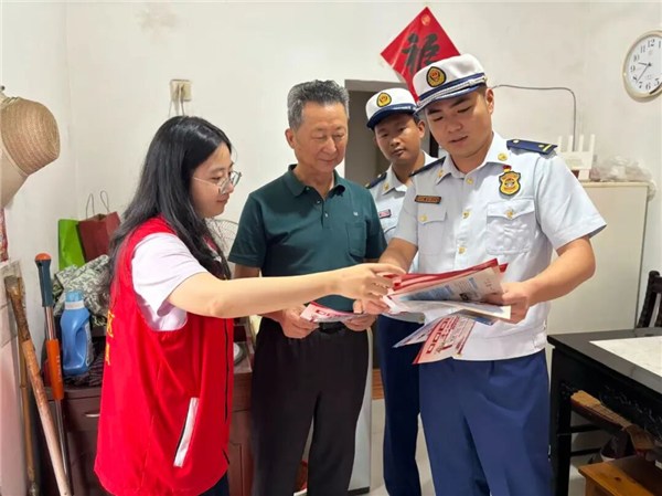 社区网格员与在职党员共同到居民家中宣传消防安全知识